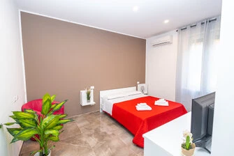 La camera Matrimoniale di Suebi Rooms può ospitare fino a 3 persone, è una splendida camera in stile moderno provvista di tutti i comfort possibili: